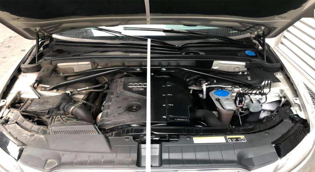 Ceramic Car wash has a 2-month warranty and provides a polishing output in the wash. Ceramic Wash, another of Detailing Wolves high-end wash options, polishes and cleans your vehicle while also applying an extra ceramic coating for protection. With proper upkeep. However, a variety of factors influence how long ceramic coatings protect car paint. Engine Room Cleaning process guarantees that your car operates effectively and that its parts survive longer by cleaning dirt… and grime and ensuring that all of your components are properly lubricated. The Engine Room Coat is intended for use after cleaning the engine compartment. The coating keeps the components clean and maintains their longevity. It offers the engine compartment a brand-new, deep matte black look.